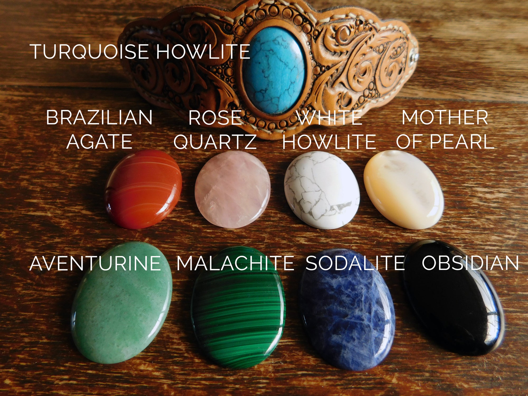 - You can choose your Gemstone from the drop down list. These gemstones are unique pieces, as they are, like leather, a natural product and no 2 will ever be the same.