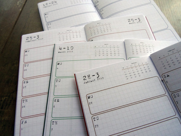 • Diary styles are available in all listed sizes, however slight variations in proportion may occur due to the different sizes