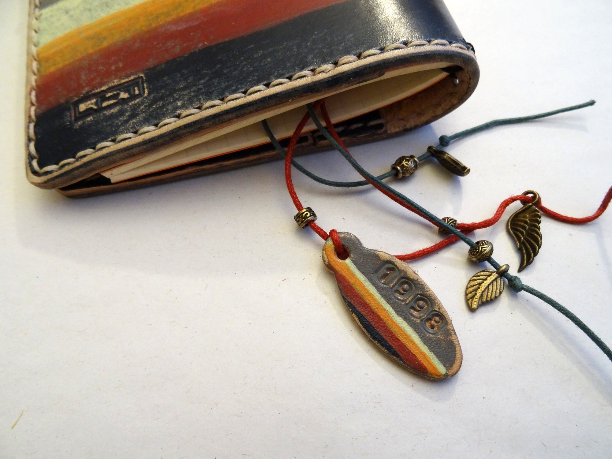 - After the Leather has been dyed, it will receive a coat off Leather acrylics. This will be done in a large band at the top with 4 smaller bands at the bottom.