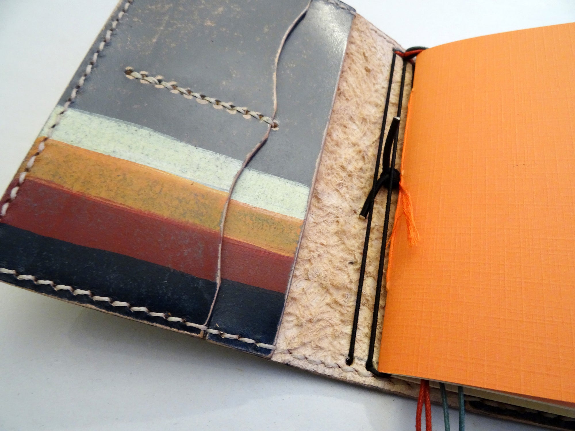 - As a last finish step the leather will be sanded to achieve the distressed look and reveal some of the underlying base color.