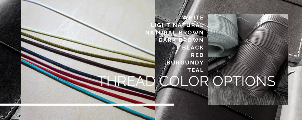 Hand stitched with strong and thick waxed polyester thread. We have 8 different colors for you to choose from.
